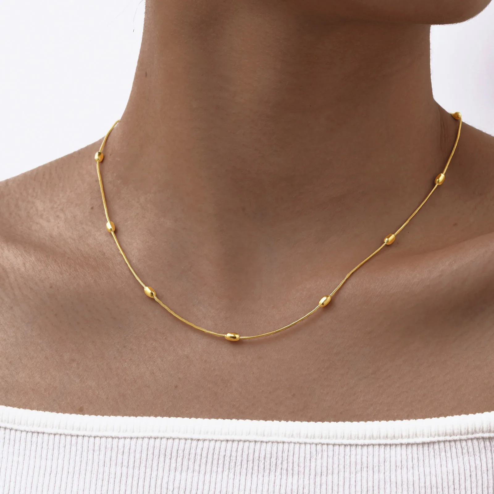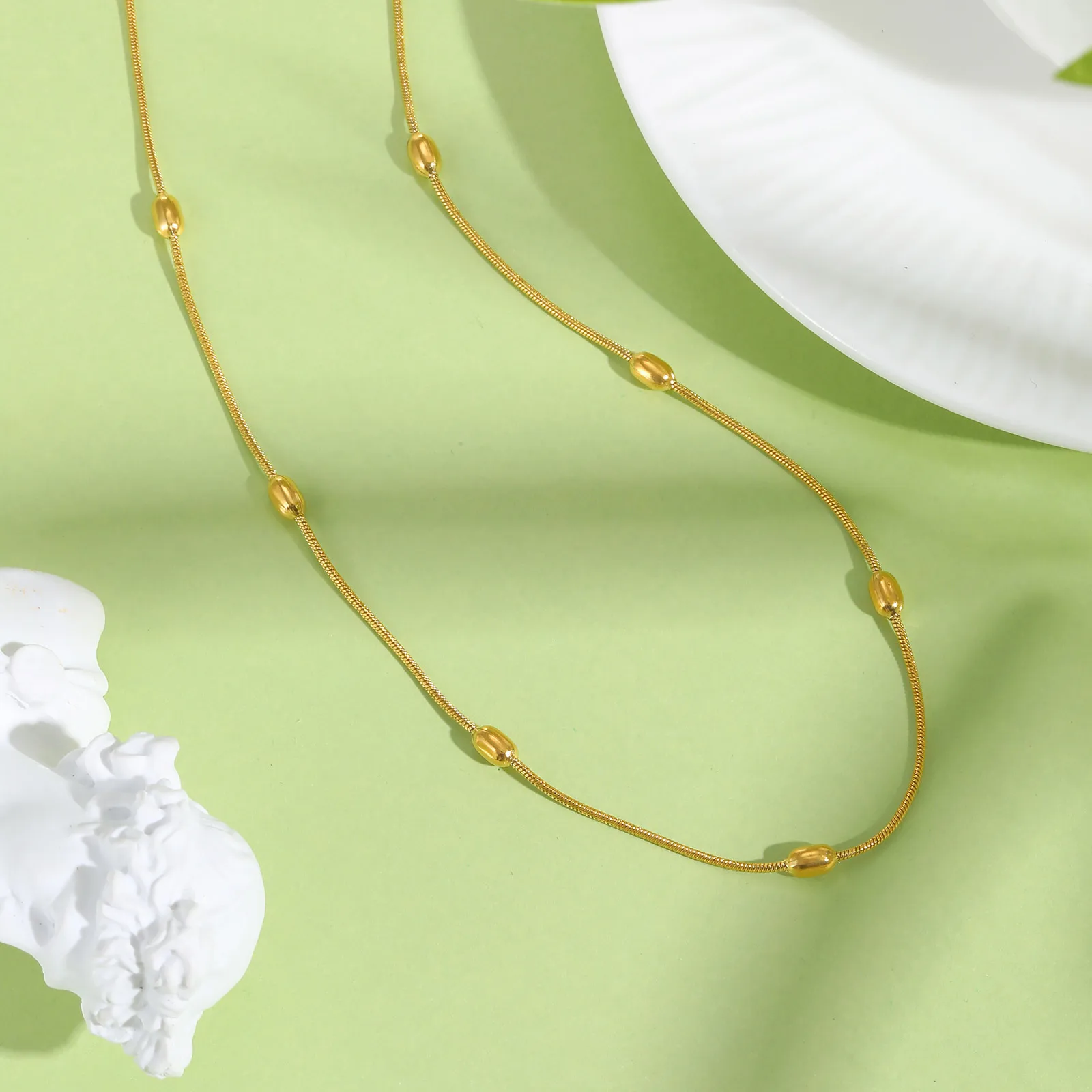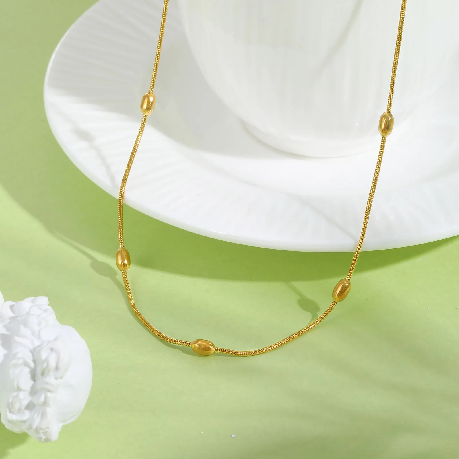 Fine Rice Beads Snake Bone Chains Necklaces Tarnish Free Stainless Steel Gold Plated Simple Clavicle Necklace for Women